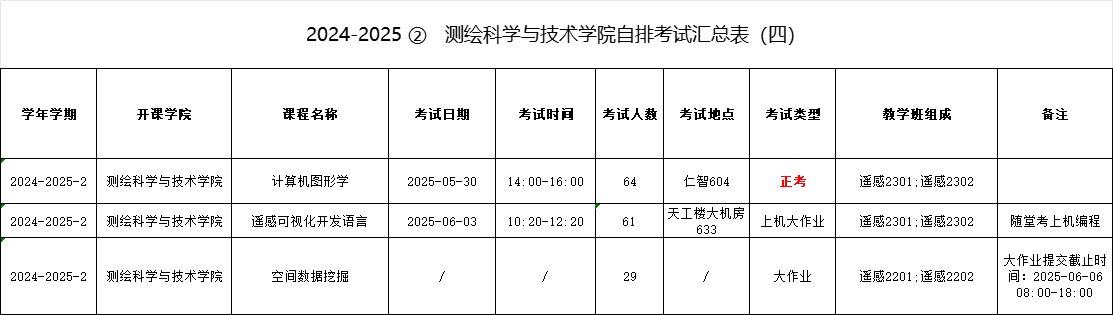2024-2025学年第2学期yL23411永利官网登录自排考试汇总表(4)