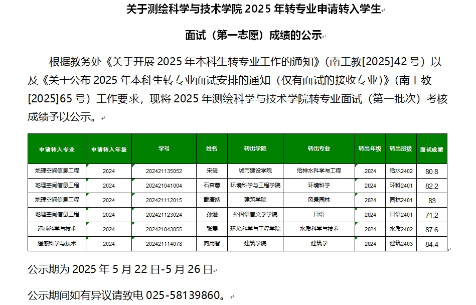 关于yL23411永利官网登录2025年转专业申请转入学生面试(第一志愿)成绩的公示