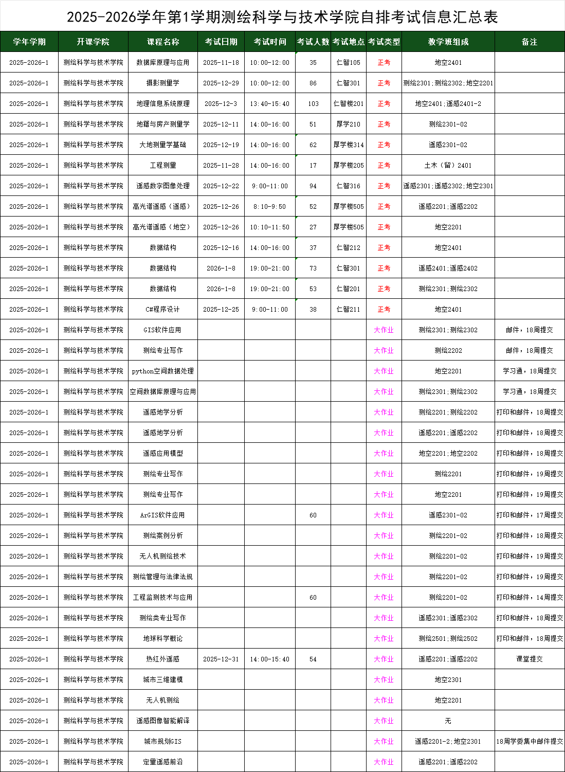 2025-2026学年第1学期yL23411永利官网登录自排考试信息汇总表